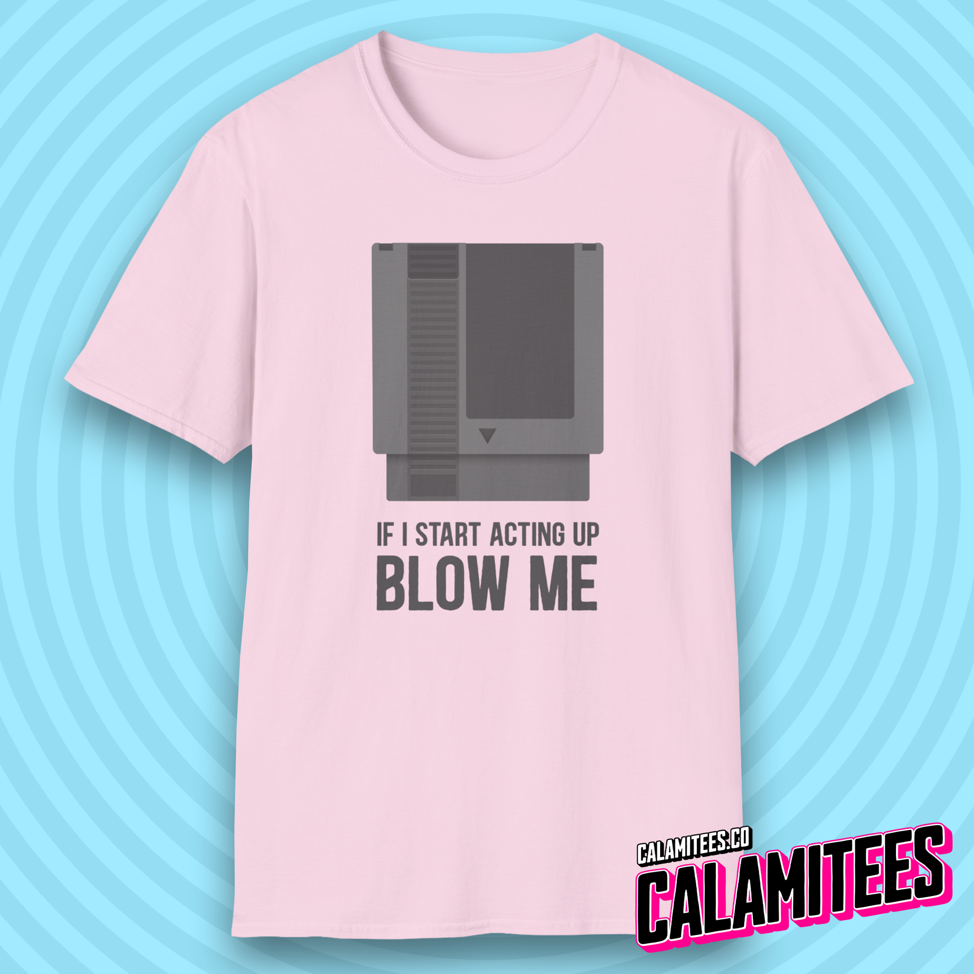 If I Start Acting Up Blow Me Retro Video Game Cartridge T-Shirt