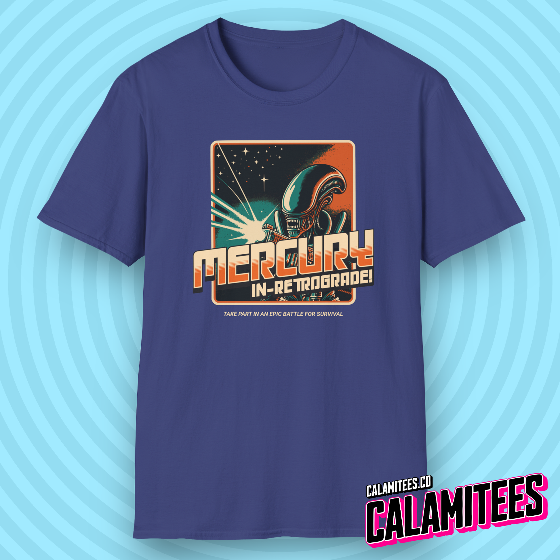 Mercury in Retrograde Retro Alien Space Video Game Cover T-Shirt Everyone knows when Mercury goes retrograde, things just don’t go right. But this shirt isn’t about avoiding the chaos—it’s about embracing the cosmic mess with a nostalgic space-age twist. Perfect for astrology nerds, space enthusiasts, or anyone who’s ever felt the planet’s pull.