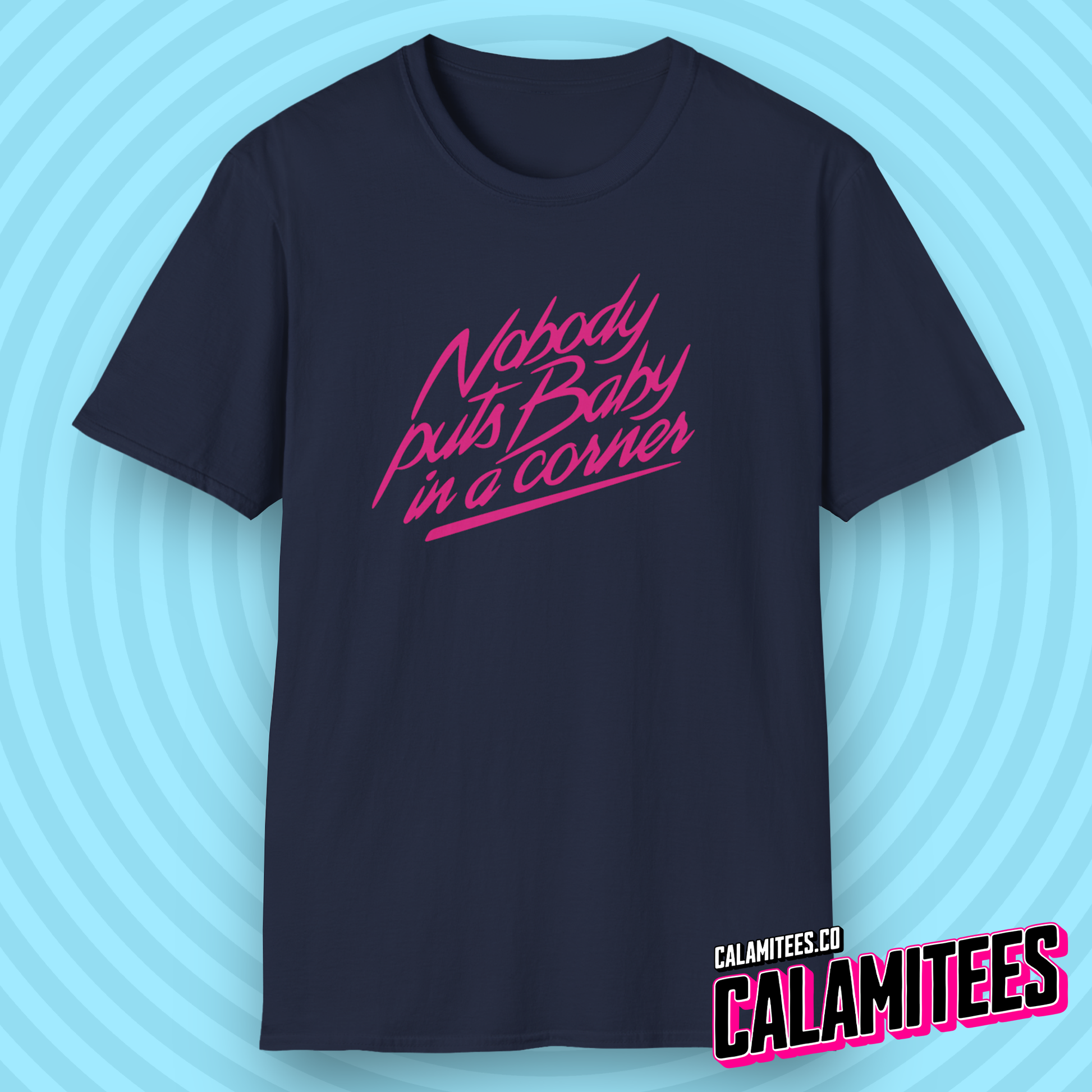 Nobody Puts Baby in a Corner—an iconic line from the classic movie Dirty Dancing. Whether you're a die-hard fan of '80s films or just love a good pop culture reference, this tee lets you channel that rebellious, dance-floor-destined energy wherever you go.