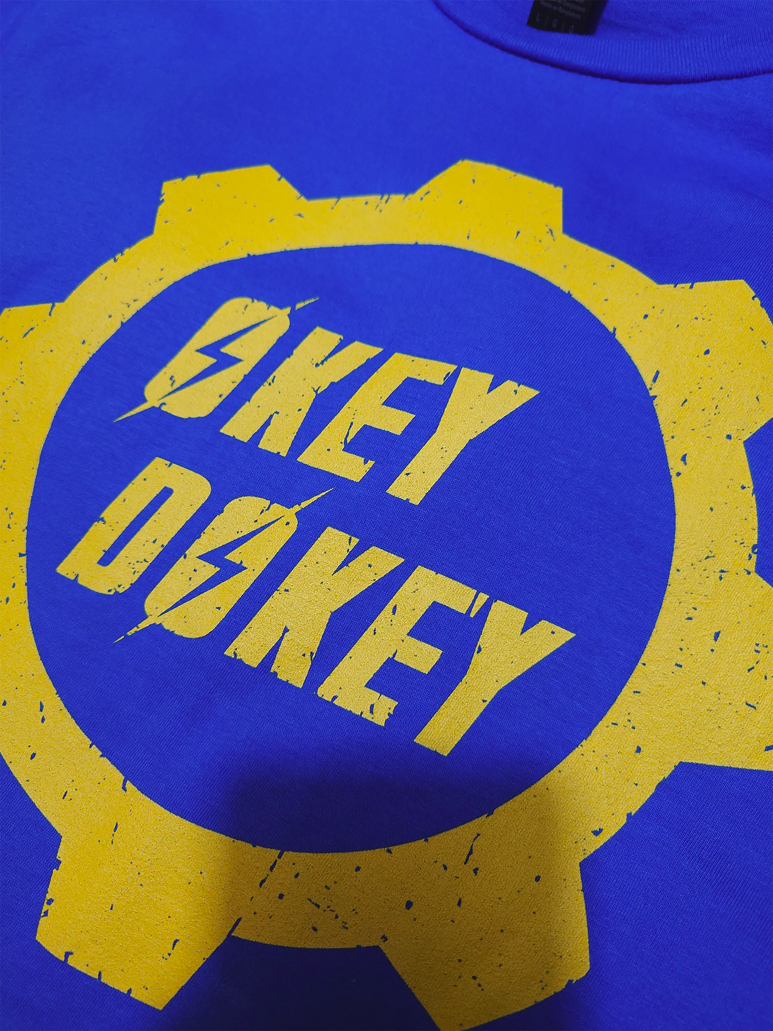 Okey Dokey Distressed Fallout Style Logo Graphic T-Shirt